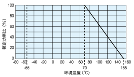 在环境温度70°C以上使用时,应按照左图负荷特性曲线,减小额定功率。