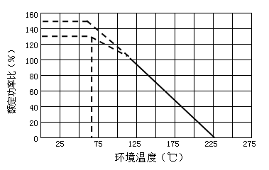 在环境温度70°C以上使用时,应按照左图负荷特性曲线,减小额定功率。